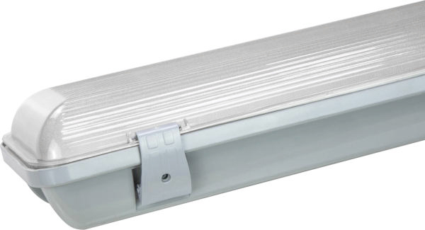 Lysrörsarmatur för belysning i lagerlokaler eller industrier. Armatur avsedd för montering dikt tak, på lina eller via fästen som följer med armaturen.