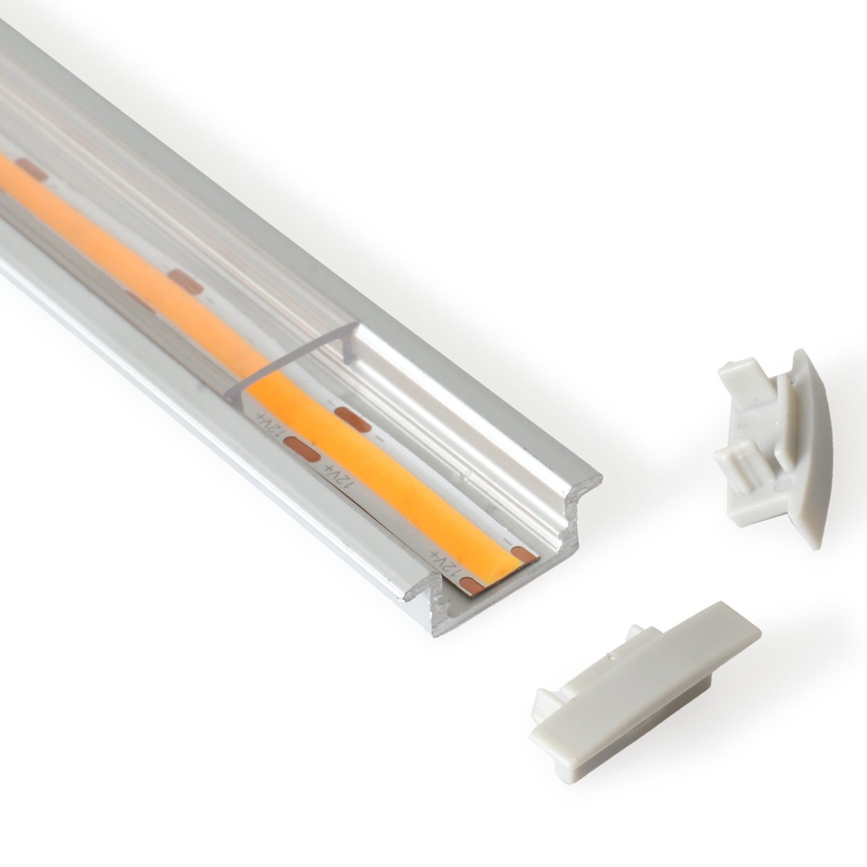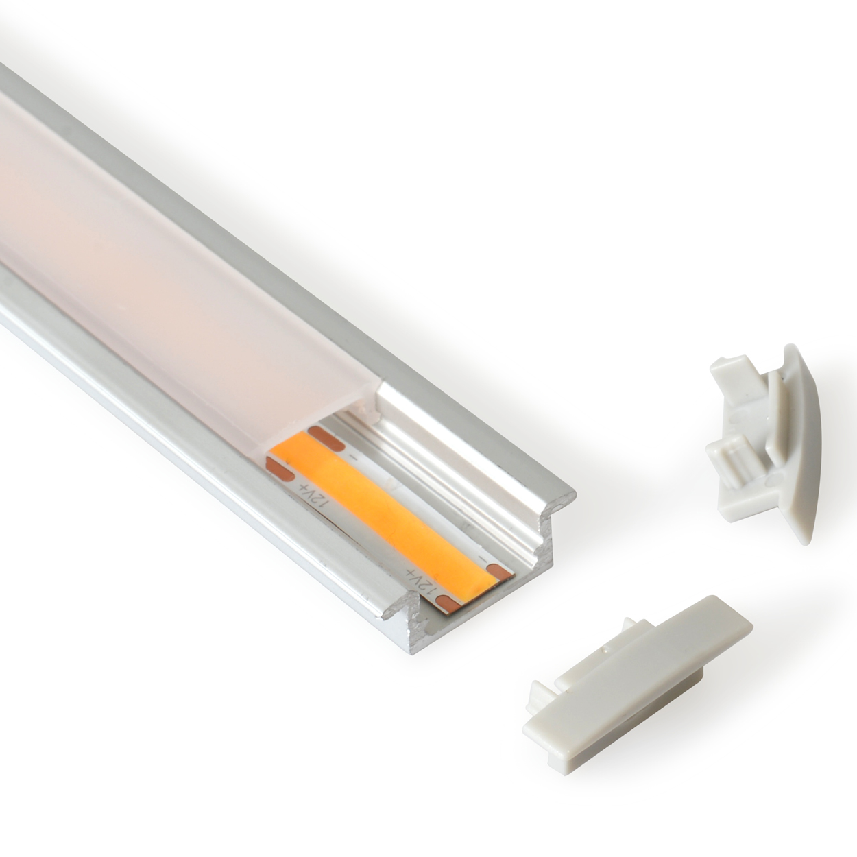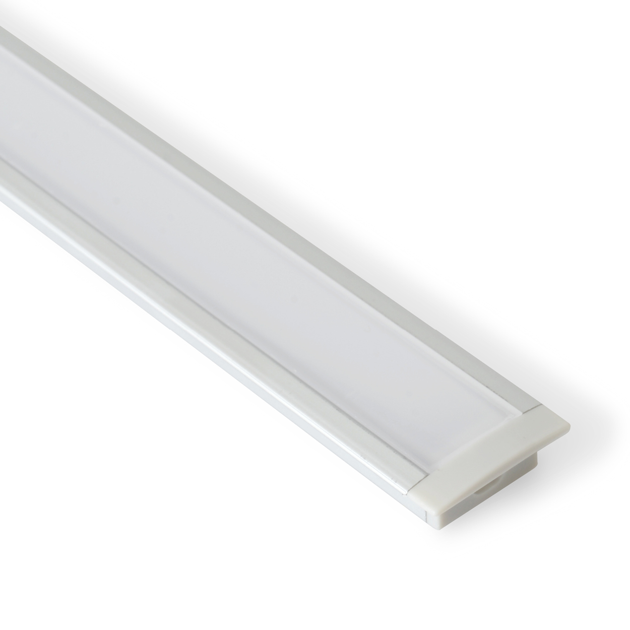 Slimmad aluminiumprofil för infälld montering. Finns med klart- respektive opalt/frostat frontglas. Kan längdanpassas efter önskemål. Max 2000mm.