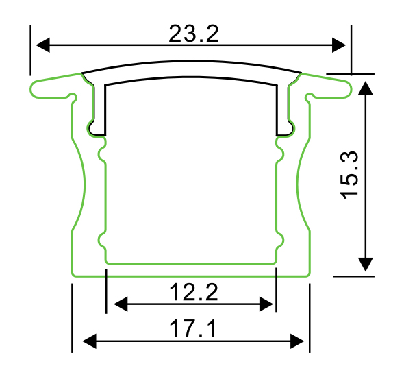 Djup aluminiumprofil för utvändigt montering. Finns med klart- respektive opalt/frostat frontglas. Kan längdanpassas efter önskemål. Max 2000mm.